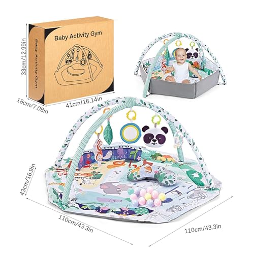 Multipurpose använder: Mätning på cirka 110x110x43cm, denna baby gymnastikmatta ger en rymlig och säker miljö för ditt barn att leka och utforska. Med sina roliga och engagerande mönster uppmuntrar det till utveckling av motorisk kompetens och sensorisk utforskning