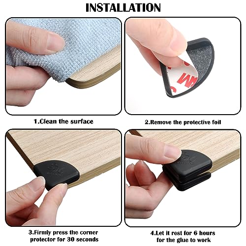 【Lätt att använda】Självhäftande babykantskydd av silikon med högkvalitativ 3M-tejp, enkel set up på alla rena, plana ytor. Inga verktyg krävs. Du rengör först bordet och hörnen och klistrar sedan quick barnhörnskyddet på hörnen.