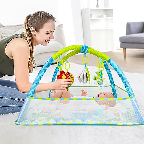 Dr.Rapeti Baby Play Mat, Baby Play Gym, Playmats & Floor Gyms, Spädbarnsaktivitet Gym Mat, Play Mat med Play Arch, löstagbar spegel, mjuk bok och bollar leksaker, tjocka icke-toxiska Playmats