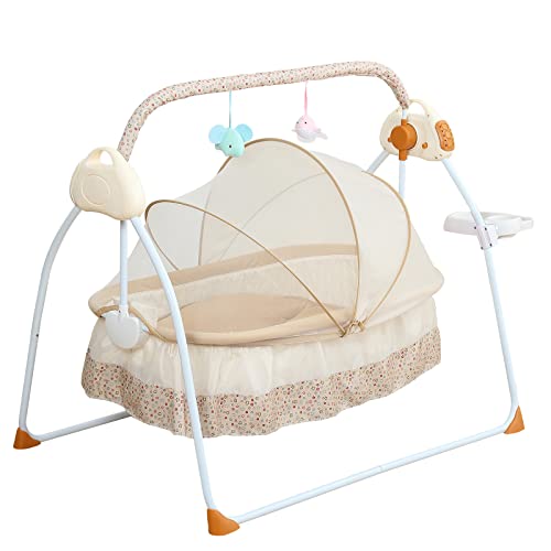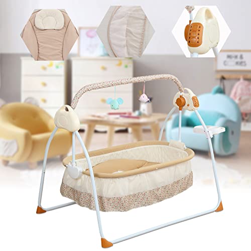 DSYOGX Elektrisk babygunga, babyvagga med 5 hastighetsinställningar och integrerad 12 musik, Bluetooth babygungbräda för 0–18 månader, 0–25 kg lastkapacitet (khaki)