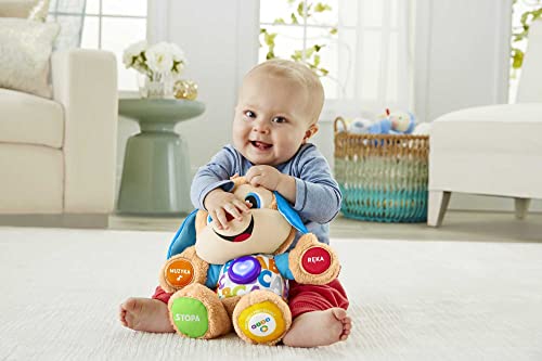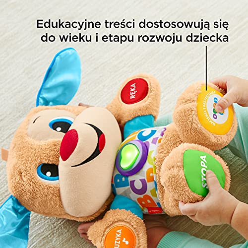 Fisher-Price lärande kul-hundar med tre nivåer | talande gosedjur med musik som barnleksak och babyleksak | interaktiv nallebjörn, version: Polsk, FPM71