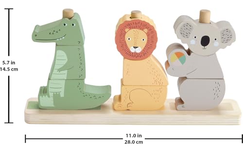 Låt barnets fantasi få fritt utlopp med leksaken Stapla och sortera djur i trä från Fisher-Worth! Barnen kan stapla delarna på basen för att bygga en alligator, ett lejon, en koala eller ett fantasidjur! All sortering och stapling hjälper dem utveckla sin finmotorik och problemlösningsförmåga. Tillverkad av trä från välskötta FSC-certifierade skogar.