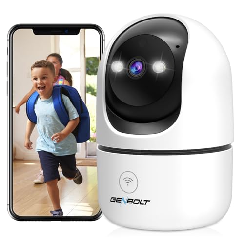 GENBOLT Inomhus WiFi Säkerhetskamera, CCTV IP-hemövervakning med humanoiddetektering, automatisk kryssning nanny husdjur hundkamera, babymonitor med ljudlarm