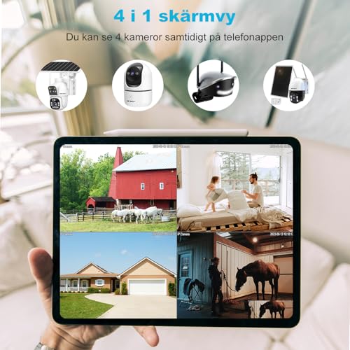 【Aktiv siren och ljusförsvar】 Du kan förinställa CCTV-kameran med en personlig siren. När rörelse utlöses kommer ljuset att tändas och ge ifrån sig en hörbar larm för att skrämma bort inkräktare. Samtidigt skickar ptz-kamera en varning until din telefon, så att du kan få fjärråtkomst until husdjurskameran och visa inspelningen.