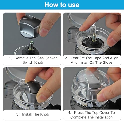 Lämplig storlek: Vår spisskyddsknappar är måttliga så att den passar de flesta spisknappar, storleken är 6 x 4 cm, höjden på gasknappen bör vara mindre än 1,57 tum, diametern på gasknappen skulle vara mindre än 2,3 tum, observera att AvAvmellan mellan den Skyddsknappar och ugnen är mer än 0,08 tum, så att spisskyddet för barn passar de flesta spisknappar