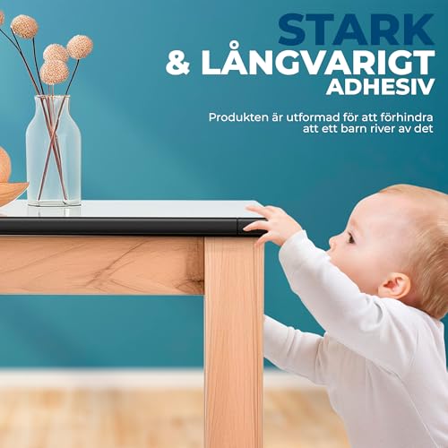 Hoffenbach Hörnskydd för Bebisar i Skumplast – 6,2m Bordskantsskydd & 12x Självhäftande Hörnskydd – Kantskydd för Barn, Bord, Skrivbord & Fönsterbräda – Svart