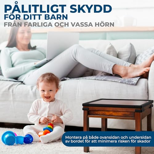 Enkel set up | Mät avståndet mellan de två skyddande hörnen och klipp av en passande bit med en sax. Ta bort en sida av 3M-tejpen och fäst den på båda sidor av hörnskydden. Rengör ytan innan du fäster dem. Ta bort skyddsfilmen från den klistriga ytan och tryck quick skyddshörnet ordentligt på önskad plats. För bästa resultat rekommenderar vi att inte utsätta barnskyddet för belastning underneath ett dygn.