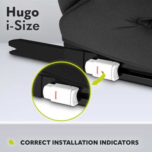 Isofix eller bilbälten: bilbarnstolen Hugo i-Size monteras framåt i riktningen. Isofix ger snabb och säker montering och minskar kraften avsevärt vid plötslig bromsning. Du kan också montera barnstolen med bilbälten. Sätet har också en indikator på korrekt installation på ISOFIX-kontakterna