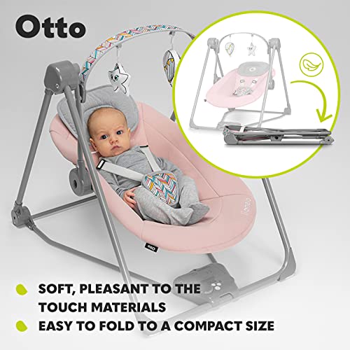 TIMER: Timern kan programmeras så att gungfunktionen automatiskt stängs av efter 15, 30, 45 minuter eller en hel timme. Extremt tystgående mekanism som inte stör de andra i hushållet. Otto har två typer av strömförsörjning: Nät eller batteri