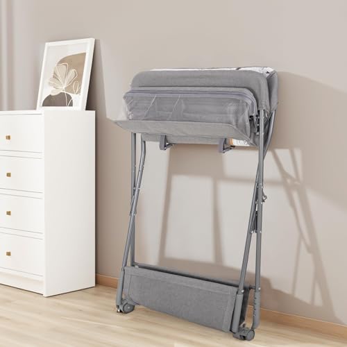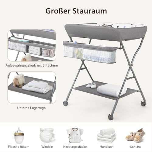 Maydolly Vikbart och bärbart skötbord,Bärbart multifunktionellt blöjbytarbord,Mobilt med hjul,Justerbar höjd,Vattentätt material är lätt att rengöra,ljusgrå