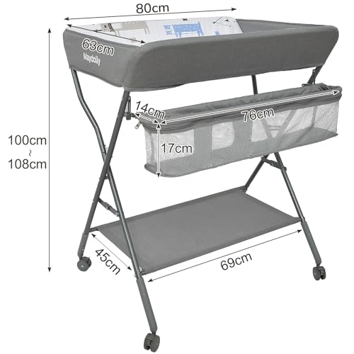 Specification: Maydolly Vikbart och bärbart skötbord,Bärbart multifunktionellt blöjbytarbord,Mobilt med hjul,Justerbar höjd,Vattentätt material är lätt att rengöra,ljusgrå