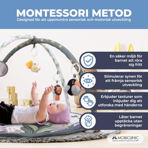 🧸 STIMULERANDE TILLBEHÖR: Denna pedagogisk matta innehåller en spegel för att uppmuntra utvecklingen av självkännedom, ljudleksaker för att utveckla hörseln och förmågan att känna igen ljud, samt mjuka leksaker för att uppmuntra taktil utveckling. Varje tillbehör är utformat för att uppmuntra utforskning genom lek, vilket bidrar until att förbättra koordination, motorik och interaktion