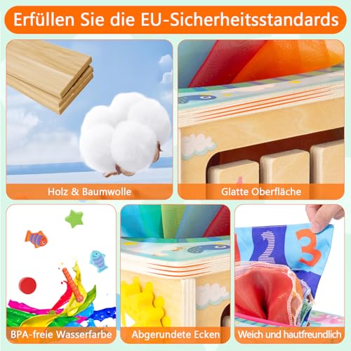 Säker och ofarlig – följer strikt säkerhetsstandarderna och använd säkra och ofarliga materials från träleksaker för spädbarn. Detta påverkar inte barnets hälsa. Ytan är slät och har inga vassa kanter, vilket garanterar ditt barns säkerhet när du leker.