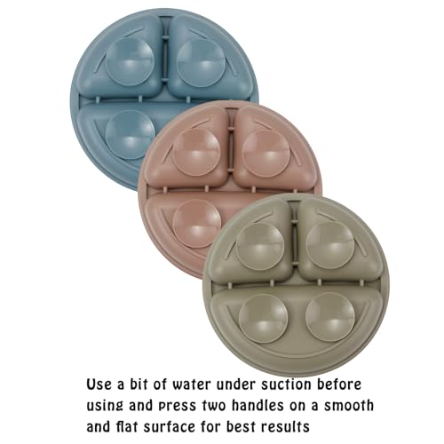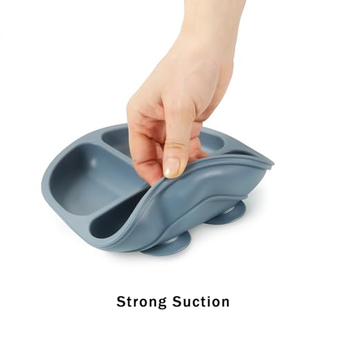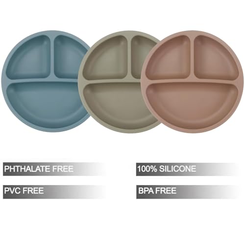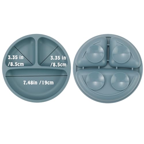 Delad sugkopp småbarnstallrik: Ge din lilla mer självständighet vid måltider med sin alldeles egna silikonplatta med 3 delade sektioner. Den halkfria designen säkerställer att tallrikarna inte kan kastas på golvet och därför minskar röran