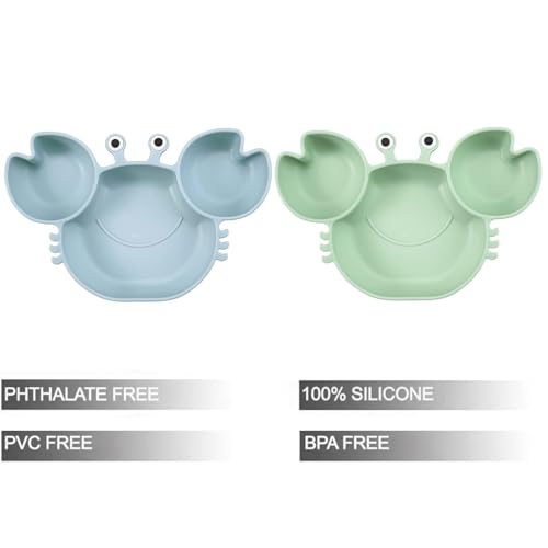 Specification: PandaEar 2 Pack Silicone Suction Plate for Baby, Divided Unbreakable Toddler Food Plate with 2 Pack Spoons for Self Feeding, Toddler Utensils Feeding Set Baby Eating Supplies, Crab Shape -Blue&Green