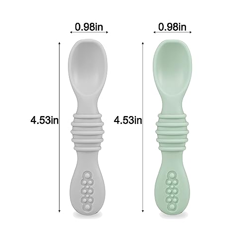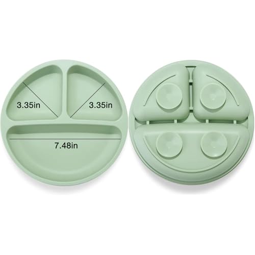 Specification: PandaEar Silicone Baby Feeding Set| 2 Pack Silicone Divided Suction Plate with 2 Pack Spoons | Baby Led Weaning Supplies Self Feeding Eating Utensils (Green/Grey)