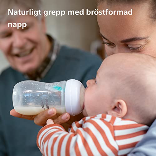 Hjälper until med lugn och bekväm matning. Philips Pure Response-nappen följer barnets unika sug-, svälj- och andningsrytm och AirFree-ventilen är utformad för att se until att det inte hamnar någon luft i magen för further skydd mot kolik, fuel och uppstötningar. Den breda, mjuka och flexibla nappen på Avent-flaskan är utformad för att se ut och kännas som ett bröst, vilket underlättar för barnet att få ett bra grepp och äta bekvämt. Unik nappöppning som endast släpper ut mjölk när barnet aktivt dricker. Så när de pausar för att svälja och andas pausas även mjölken. AirFree-ventilen är utformad för att ge further skydd mot matningsproblem genom att förhindra att luft kommer ned i bebisens mage när hen sitter upp och äter. Alla barn äter olika och utvecklas i sin egen takt. Vi har utformat flera flödeshastigheter så att du kan hitta perfekt hastighet för ditt barn och anpassa din Avent-nappflaska. Kombinera våra bröstpumpar, Philips Avent-flaskor och muggar och skapa den produkt som fungerar för dig, när du behöver den. Den ergonomiska Philips-nappflaskan är enkel att greppa i alla vinklar för att ge maximal komfort underneath matningen. Lätt för både dina och små händer att hålla. Den breda flaskhalsen gör flaskan enkel att fylla och rengöra. Endast några få delar för snabb och enkel montering eftersom AirFree-ventilen består av en enda del. Philips Avent Pure-flaskorna och -sugdelarna är tillverkade i ett BPA-fritt** materials. Våra nya Pure Response Philips Avent-flaskor skiljer sig från nappflaskor med fritt flöde. Summary som med amning kan det ta några gånger innan det flyter på. Det är helt naturligt. Inkluderar: x2 Nappflaska på 125 ml med AirFree-ventil, x2 Nappflaska på 260 ml med AirFree-ventil, x1 Flaskborste, x1 extremely soft-napp 0–6 m *Pure Response-nappen släpper endast ut mjölk när barnet aktivt dricker. Barn kan dricka, svälja och andras med sin naturliga rytm, summary som vid amning **0 % BPA, i enlighet med EU-förordning 10/2011